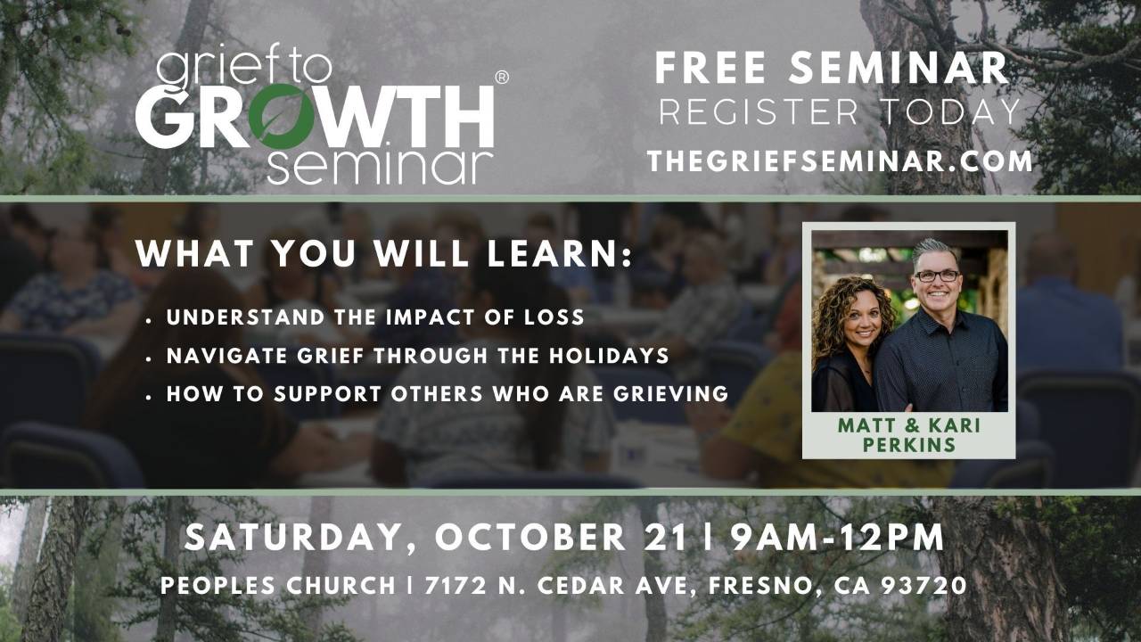 Matt and Kari Perkins founded Grief to Growth® in 2021 after both losing their spouses in 2015. They met through the counselor they were both seeing, married in 2017, and now have a blended family of 7 children.